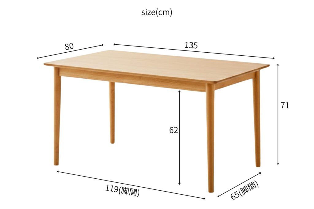 | 品番/品名 | DT-MS-10-135 ダイニングテーブル | 商品サイズ(mm) | W1,350*D800*H710 |