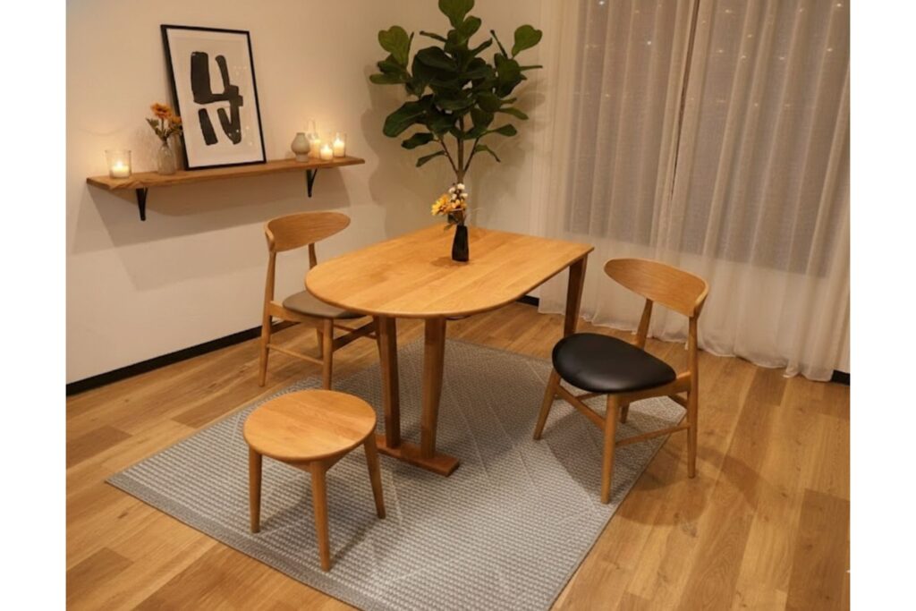 115サイズは要望が多かった無垢材のコンパクトダイニングとしてご案内できるモデル