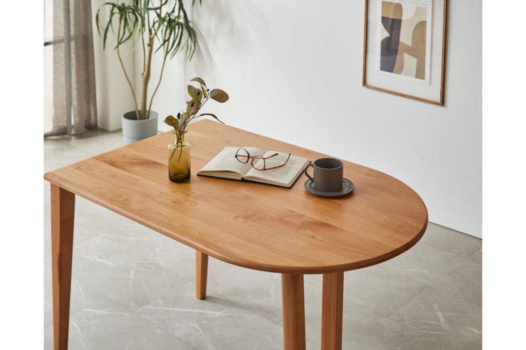 アルダー総無垢の優しい杢目を活かし透明感を持たせ企画した “Caribou” ダイニングテーブル