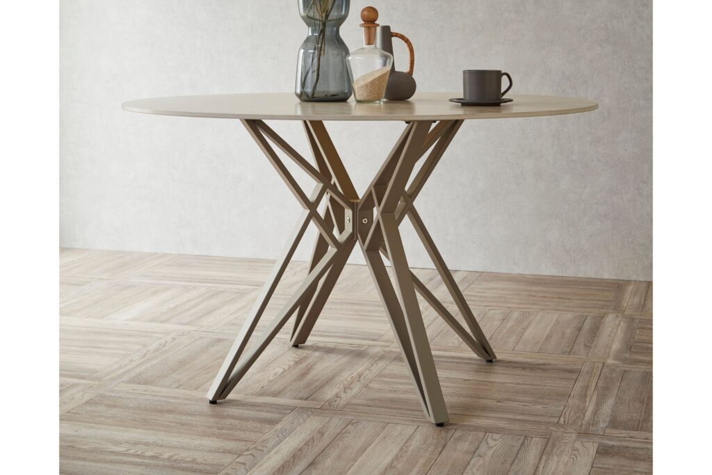 天板に10mmセラミックを使い、脚部には企画イメージに合わせたグレージュカラースチールを採用