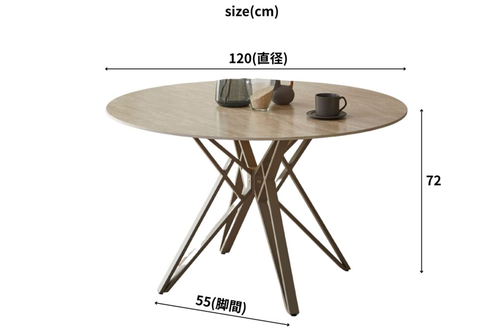 少し大きめ120サイズのラウンドテーブルは4~6人でのご使用を想定したサイズ感となっております。