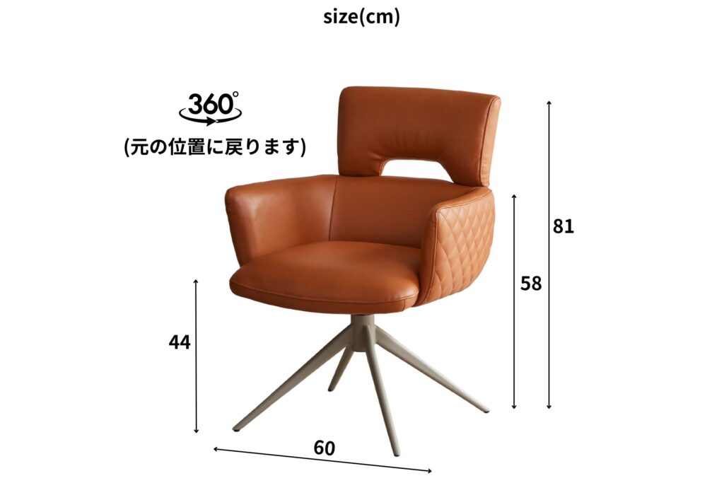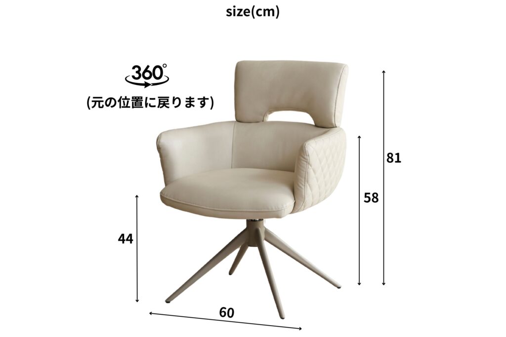チェアはオートリターンタイプの360度回転式 (元の位置に座面が戻ります)