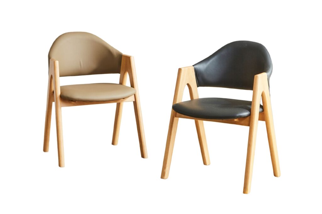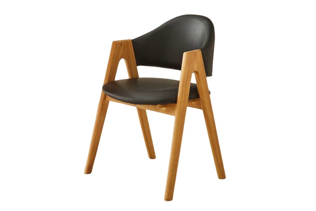 脚部にラバーウッド材を使用した肘付きダイニングチェア “Caribou”