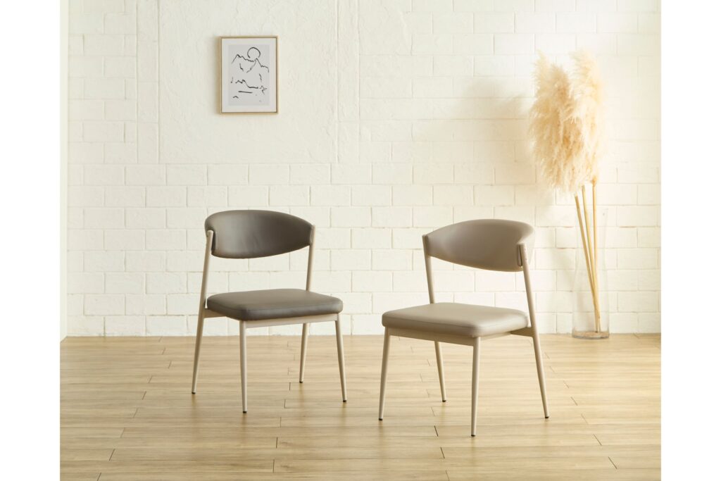 チェアはカーキとベージュの2色対応、PU素材で汚れを気にせずにご使用いただけます