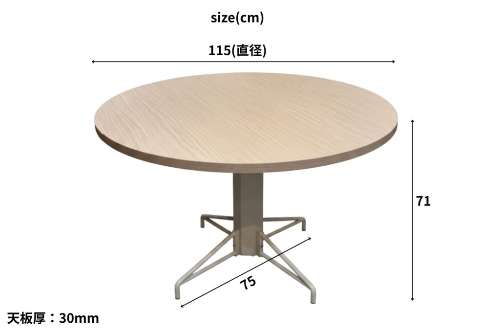 会話が弾む円形デザイン。115サイズで大きすぎず小さすぎず丁度良いサイズ感